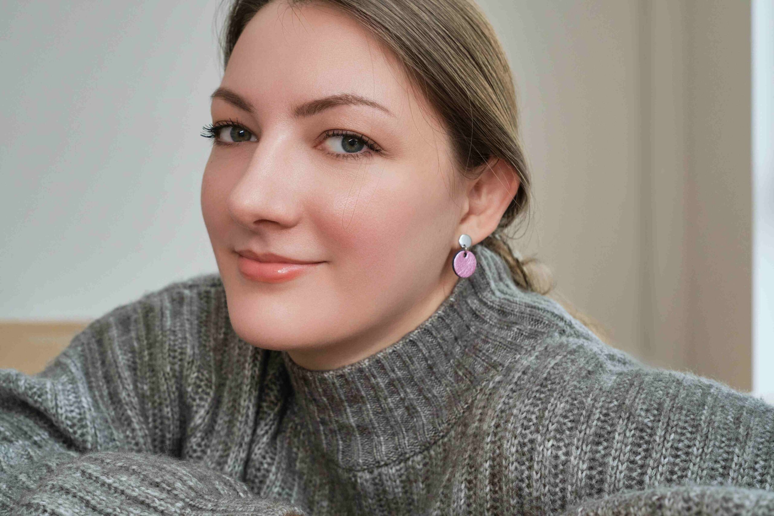 Store in an airtight container to avoid wrinkling the delicate skin. Avoid chemicals and moisture (e.g. hairspray and water). Any stains can be gently removed with gentle wipes, for example. Excessive handling may remove the glitter, so handle your jewellery with care.