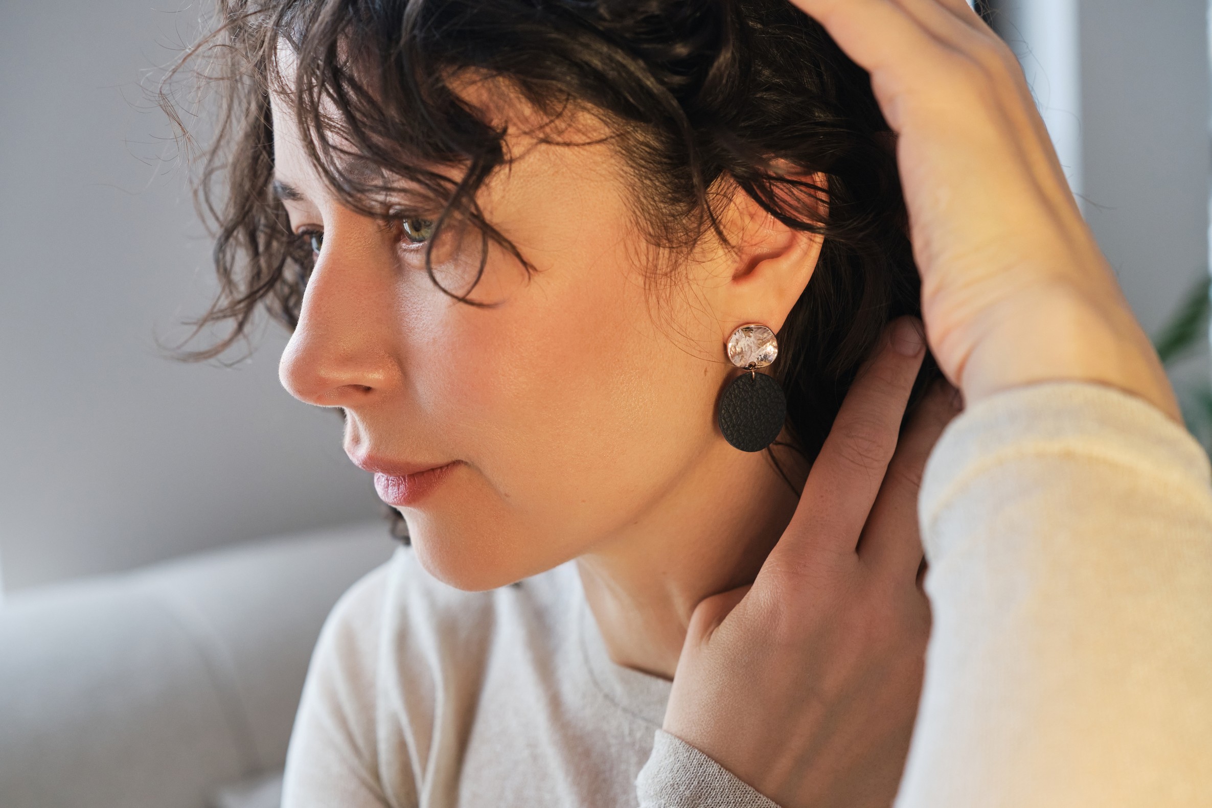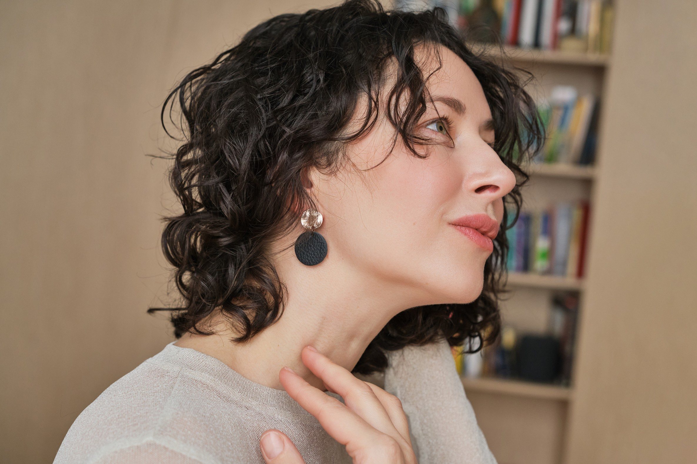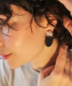 Store in an airtight container to avoid wrinkling the delicate skin. Avoid chemicals and moisture (e.g. hairspray and water). Any stains can be gently removed with gentle wipes, for example. Excessive handling may remove the glitter, so handle your jewellery with care.