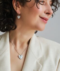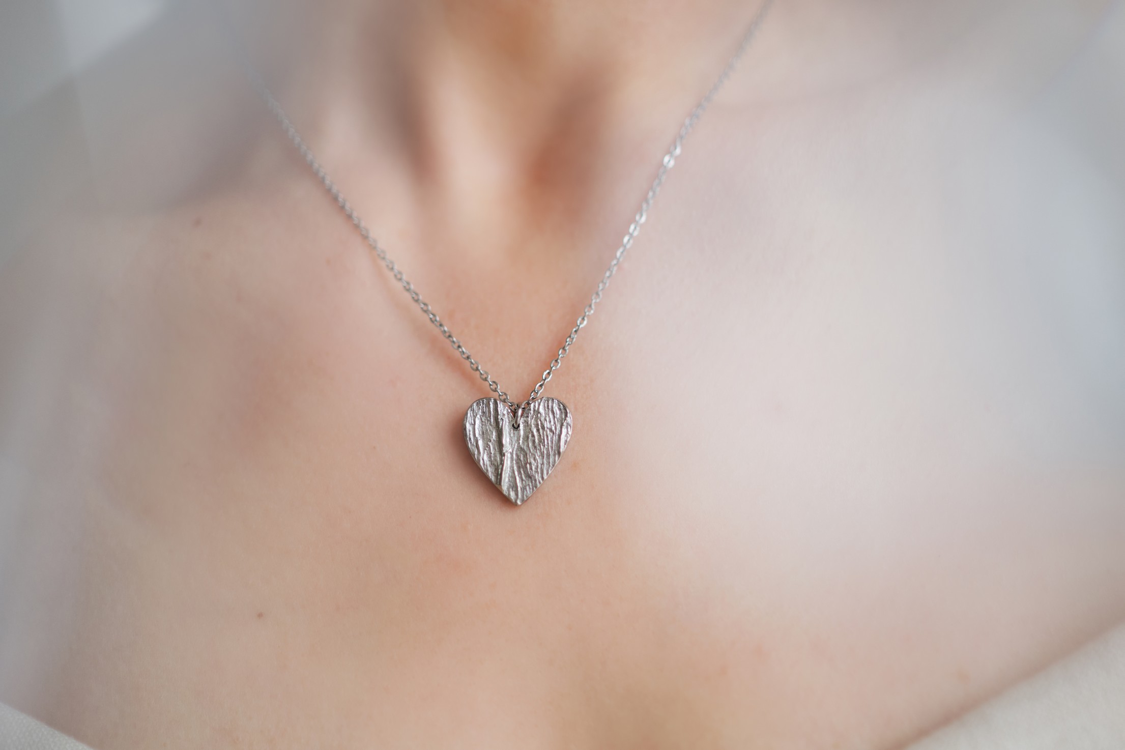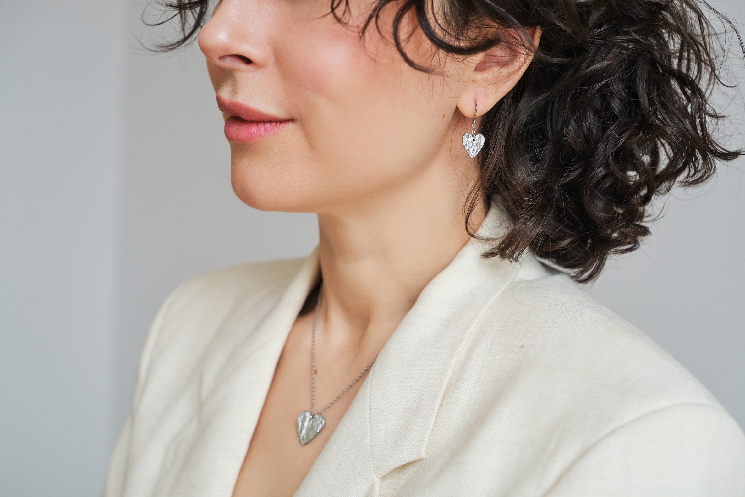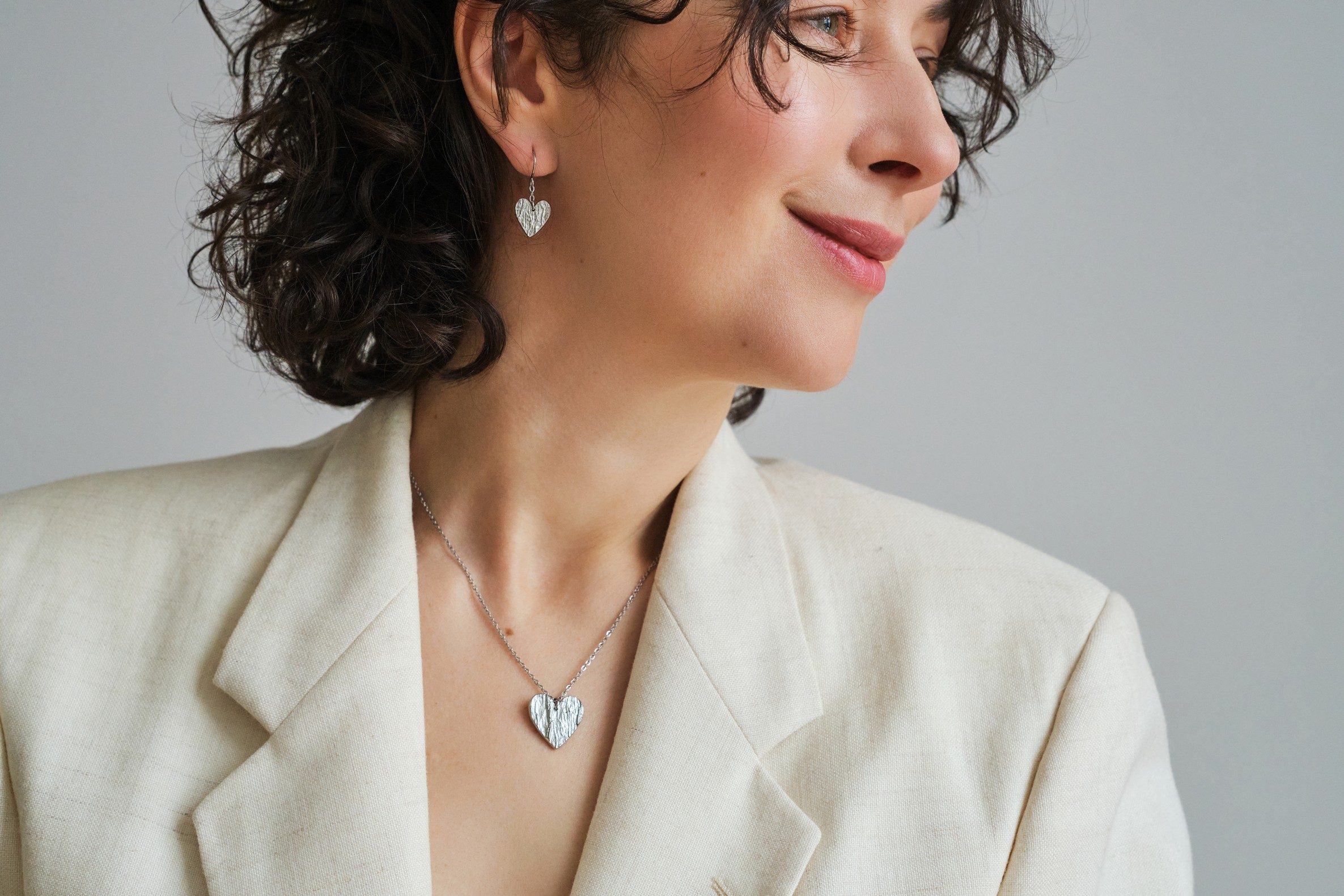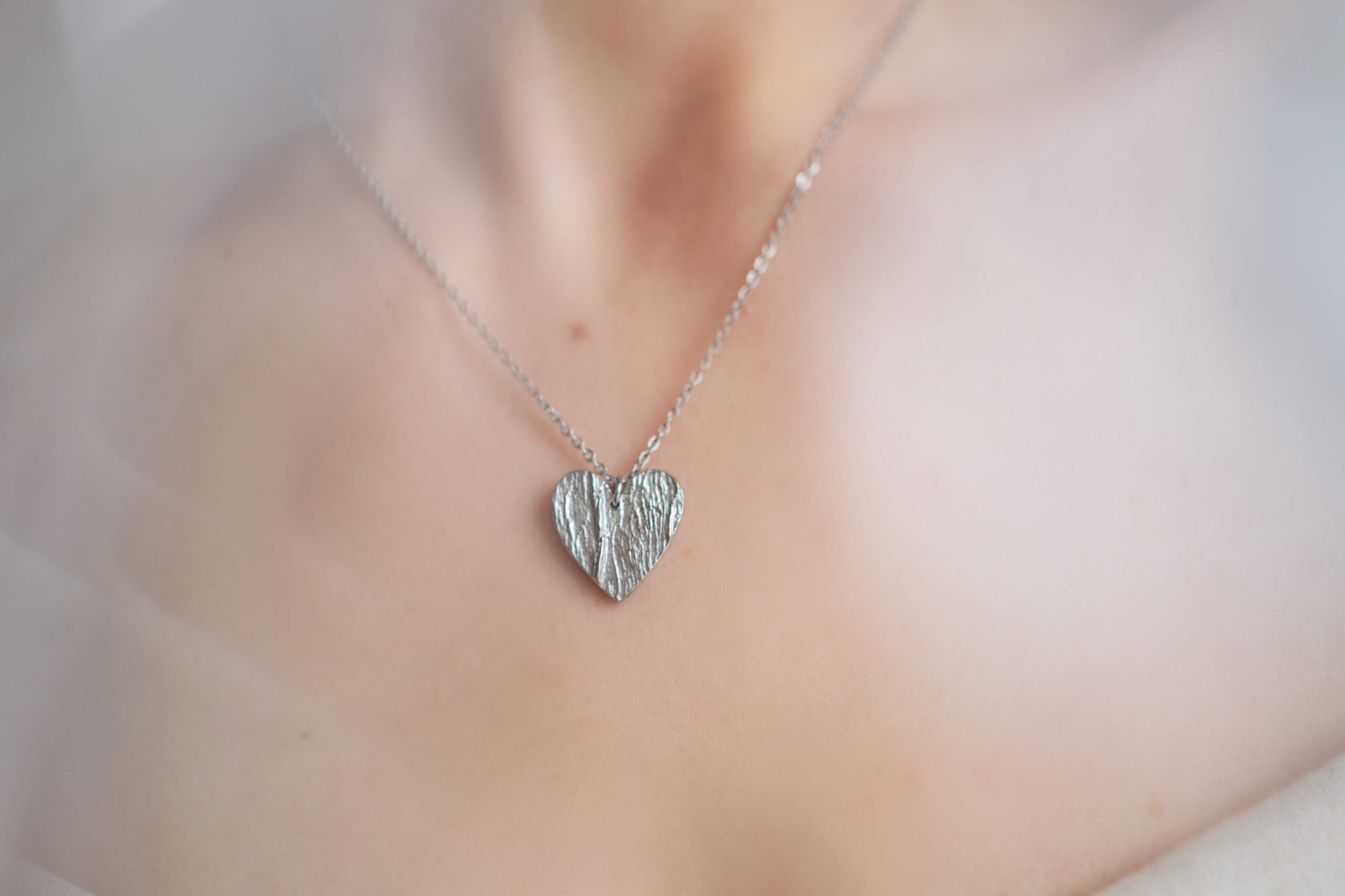 Valmistamme korut nikkelivapaasta lyijyttömästä korutinasta. Korunosat ovat koruterästä. Tina on melko pehmeä ja hopeaa hieman tummempi metalli. Se ei kuitenkaan ole yhtä herkkä muuttamaan väriä / tummumaan kuin hopea ja lakkapinta korun pinnassa suojaa kiiltoa. Korun voi puhdistaa miedolla pesuaineella, mutta kannattaa välttää hankausta, jolloin suojaava lakkapinta ei vaurioidu.