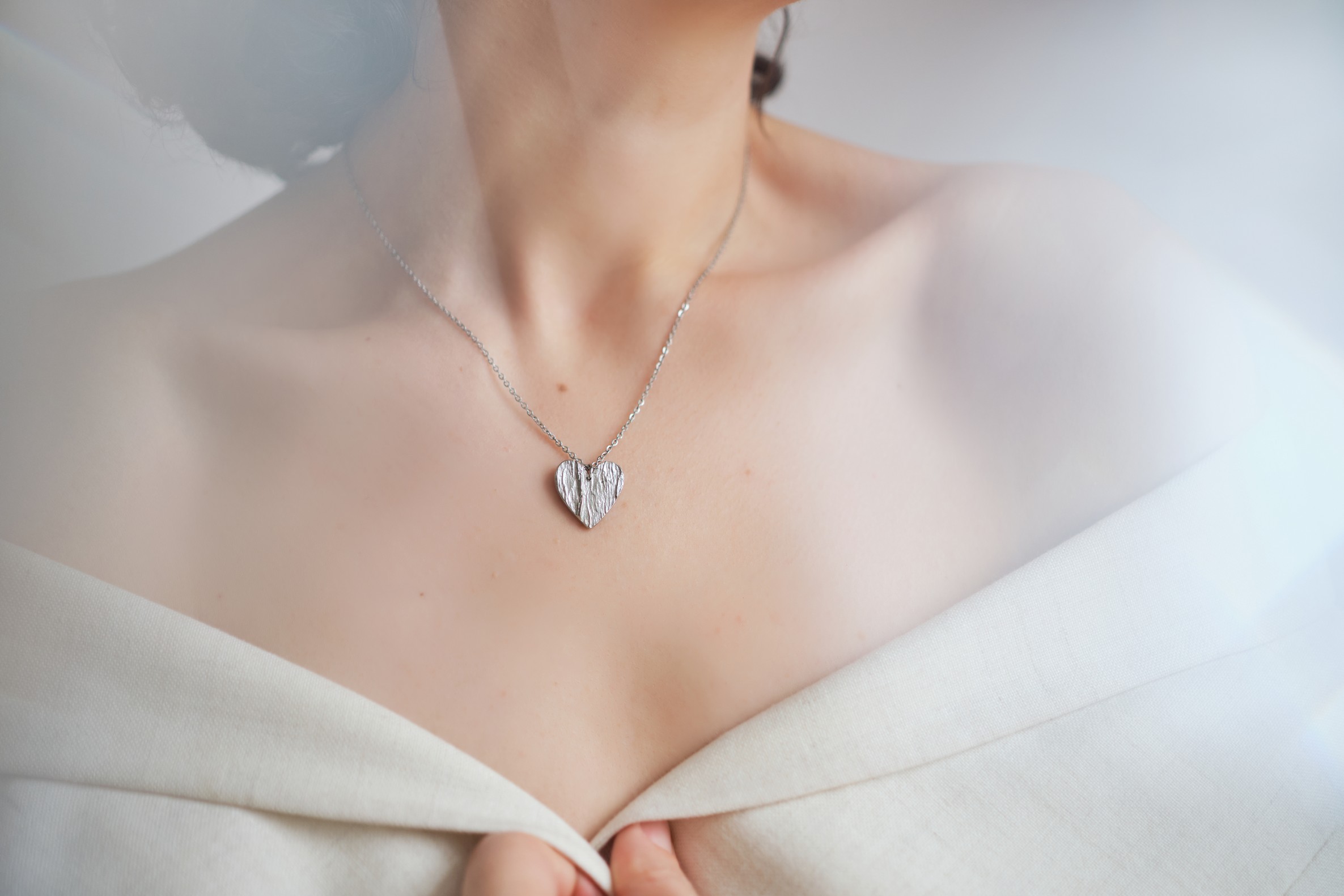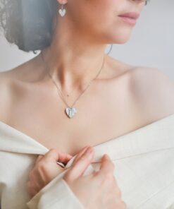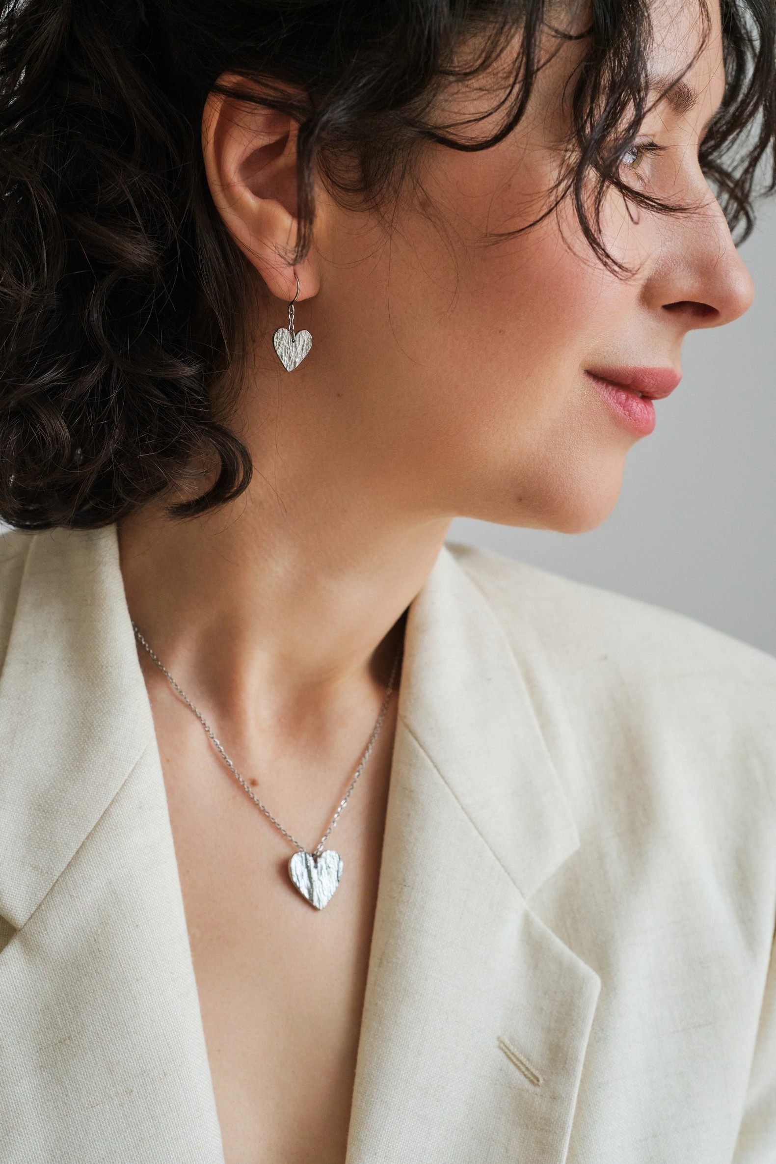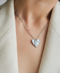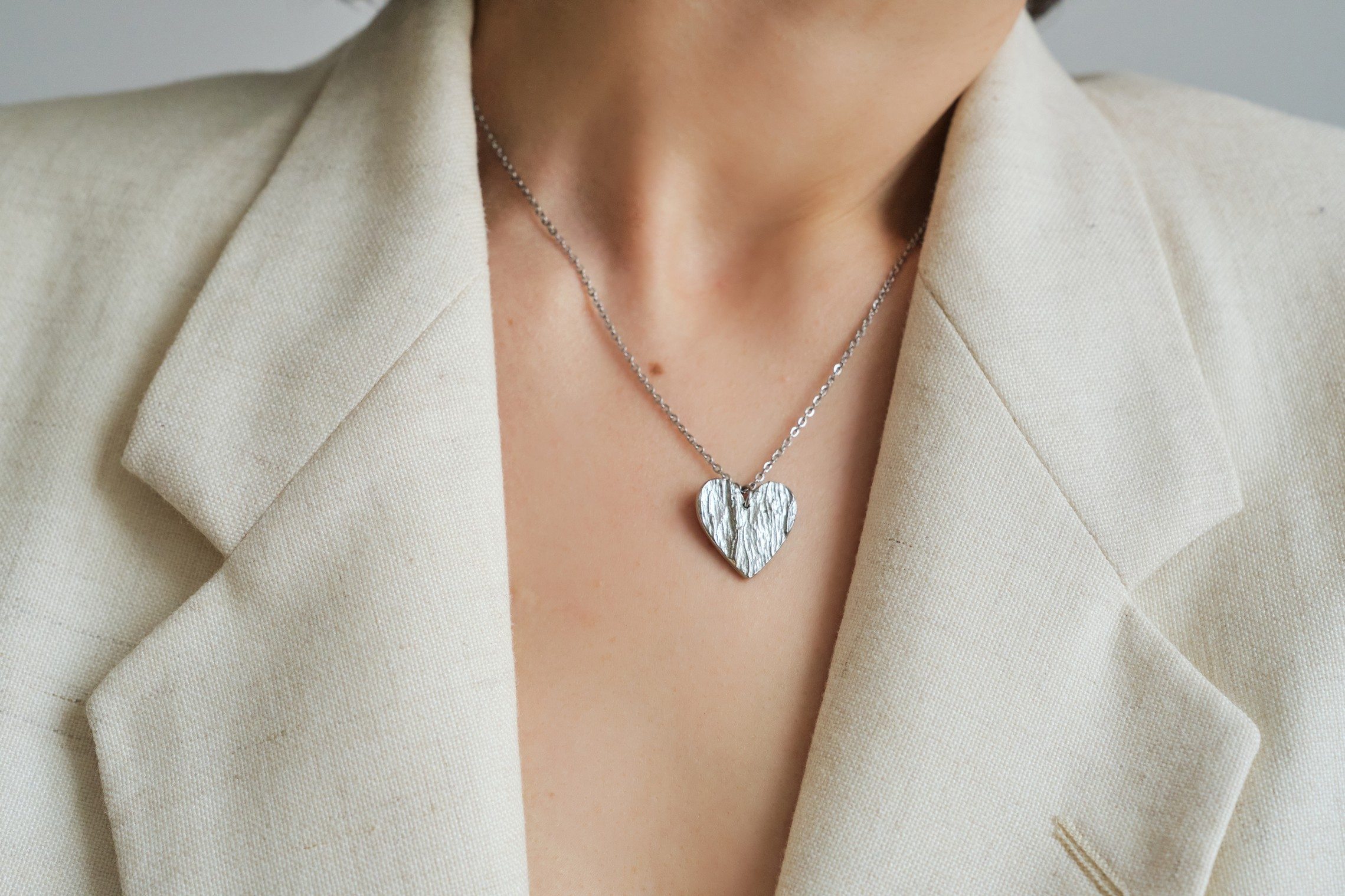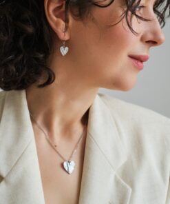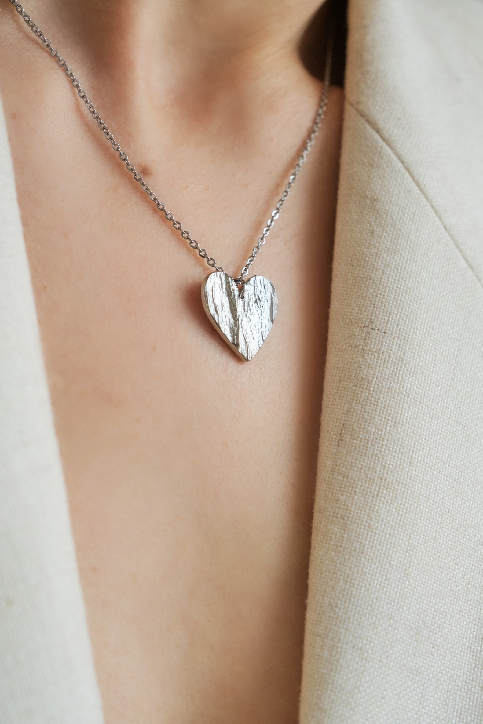 Valmistamme korut nikkelivapaasta lyijyttömästä korutinasta. Korunosat ovat koruterästä. Tina on melko pehmeä ja hopeaa hieman tummempi metalli. Se ei kuitenkaan ole yhtä herkkä muuttamaan väriä / tummumaan kuin hopea ja lakkapinta korun pinnassa suojaa kiiltoa. Korun voi puhdistaa miedolla pesuaineella, mutta kannattaa välttää hankausta, jolloin suojaava lakkapinta ei vaurioidu.