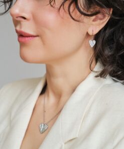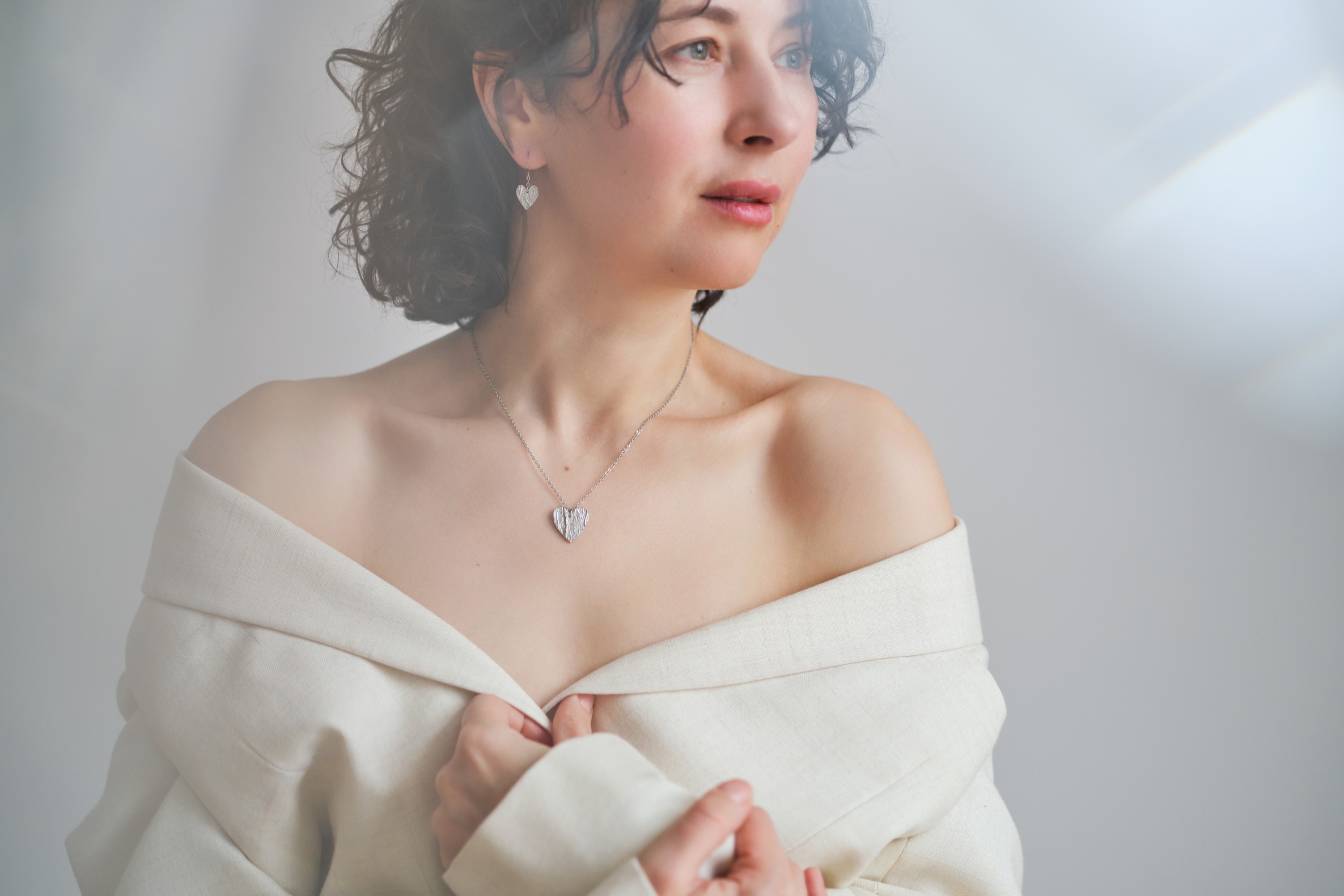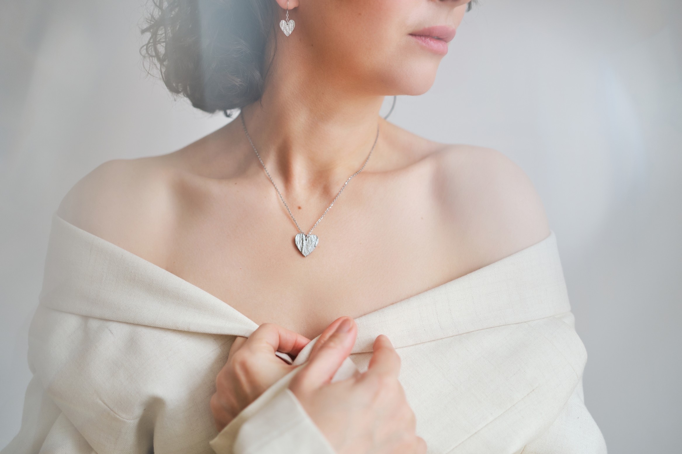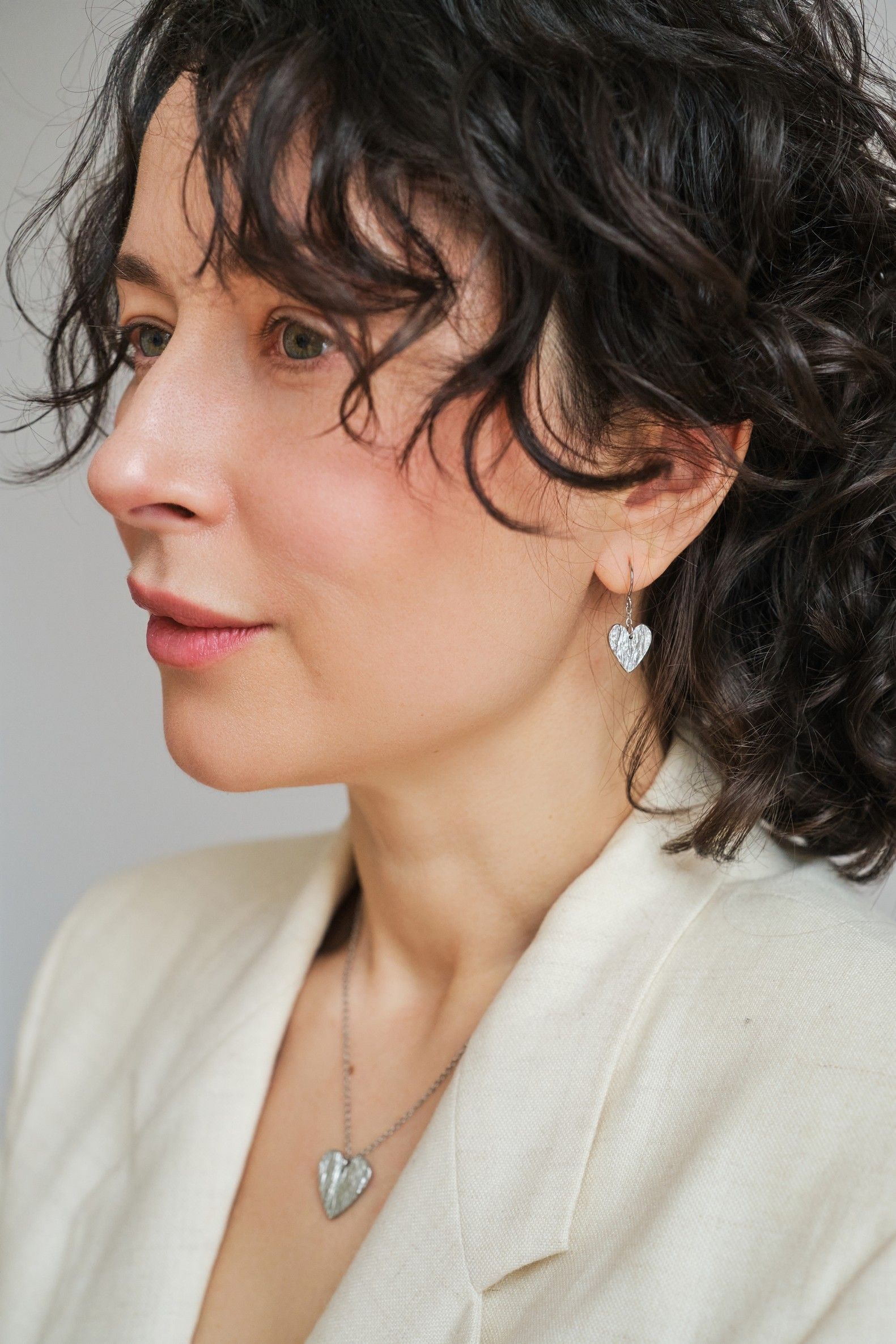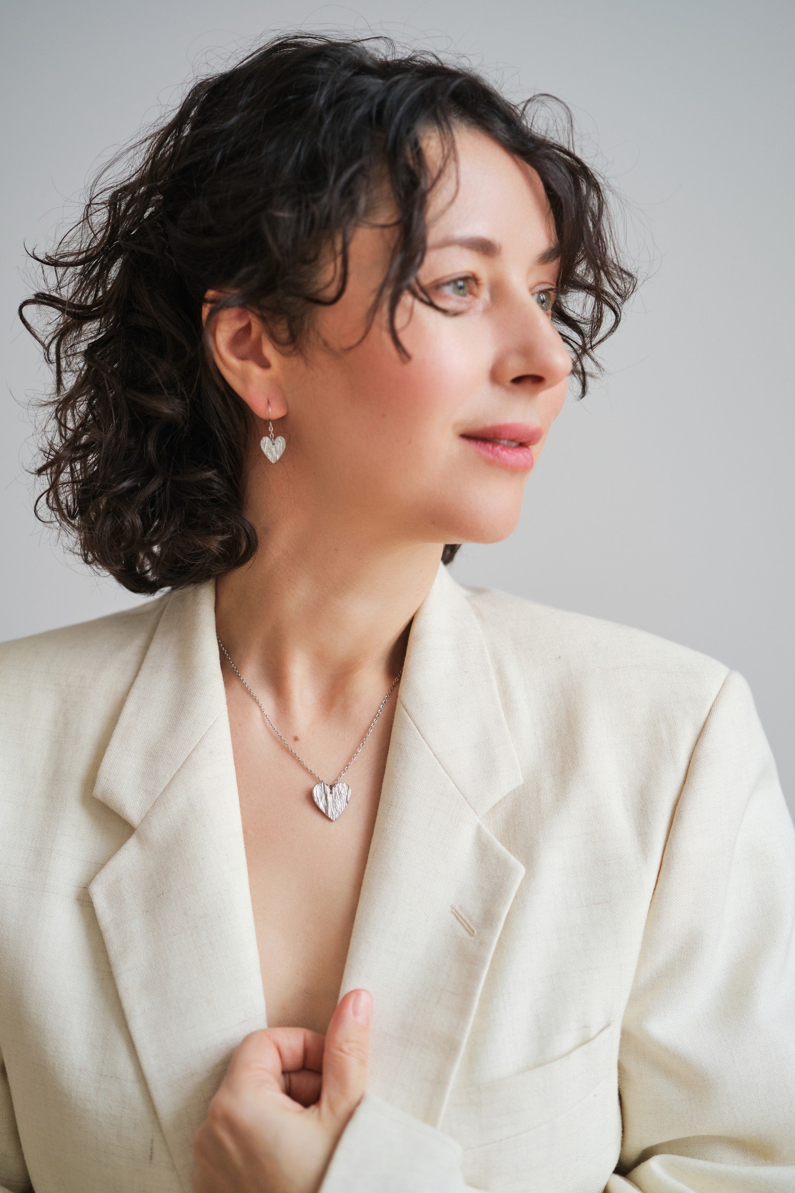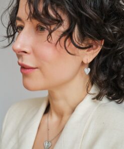 Valmistamme korut nikkelivapaasta lyijyttömästä korutinasta. Korunosat ovat koruterästä. Tina on melko pehmeä ja hopeaa hieman tummempi metalli. Se ei kuitenkaan ole yhtä herkkä muuttamaan väriä / tummumaan kuin hopea ja lakkapinta korun pinnassa suojaa kiiltoa. Korun voi puhdistaa miedolla pesuaineella, mutta kannattaa välttää hankausta, jolloin suojaava lakkapinta ei vaurioidu.